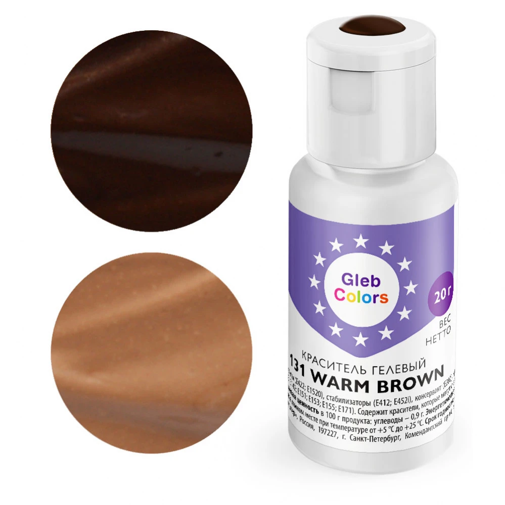 Гелевый краситель пищевой Gleb Colors 131 Теплый коричневый (WARM BROWN), 20г