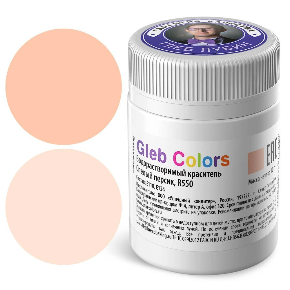 Сухой водорастворимый краситель пищевой Gleb Colors Спелый персик, 10г